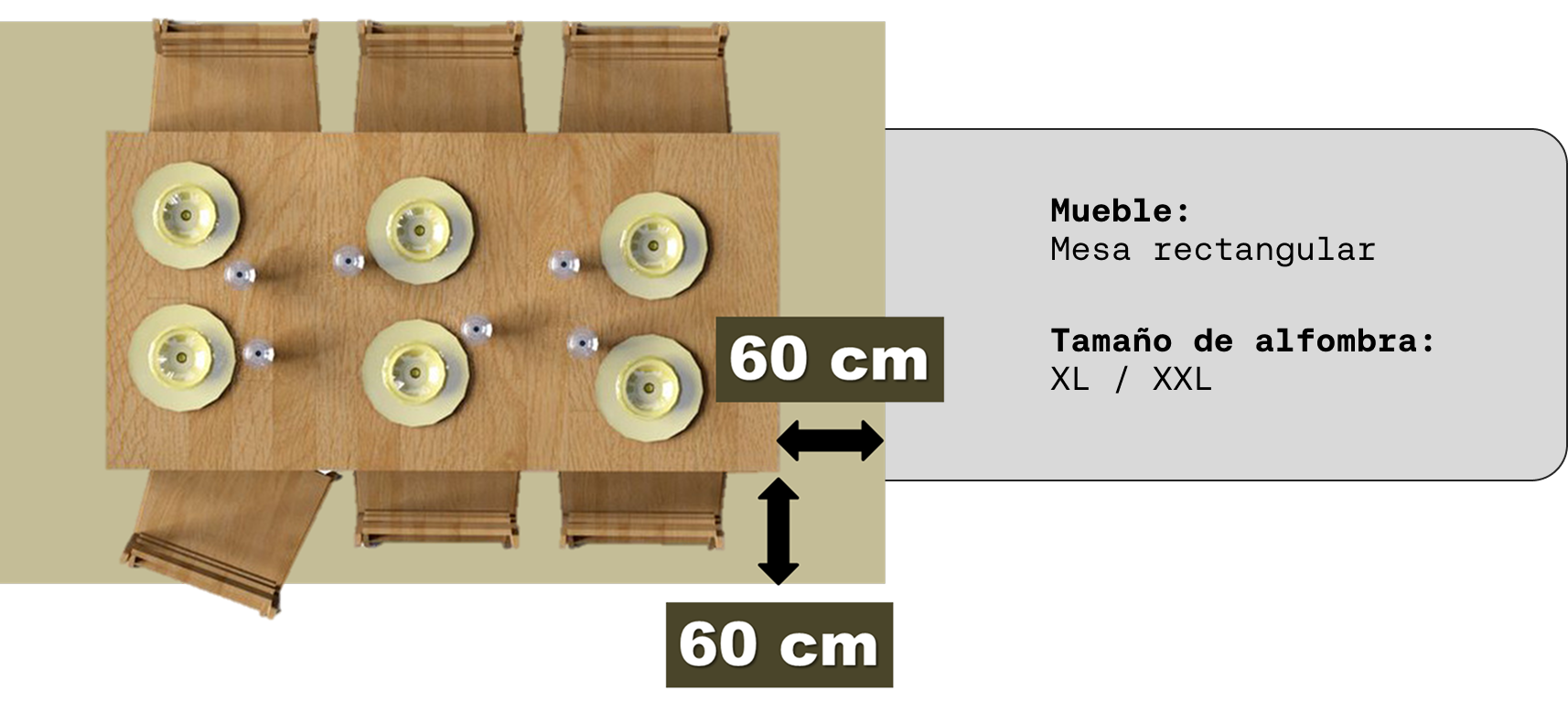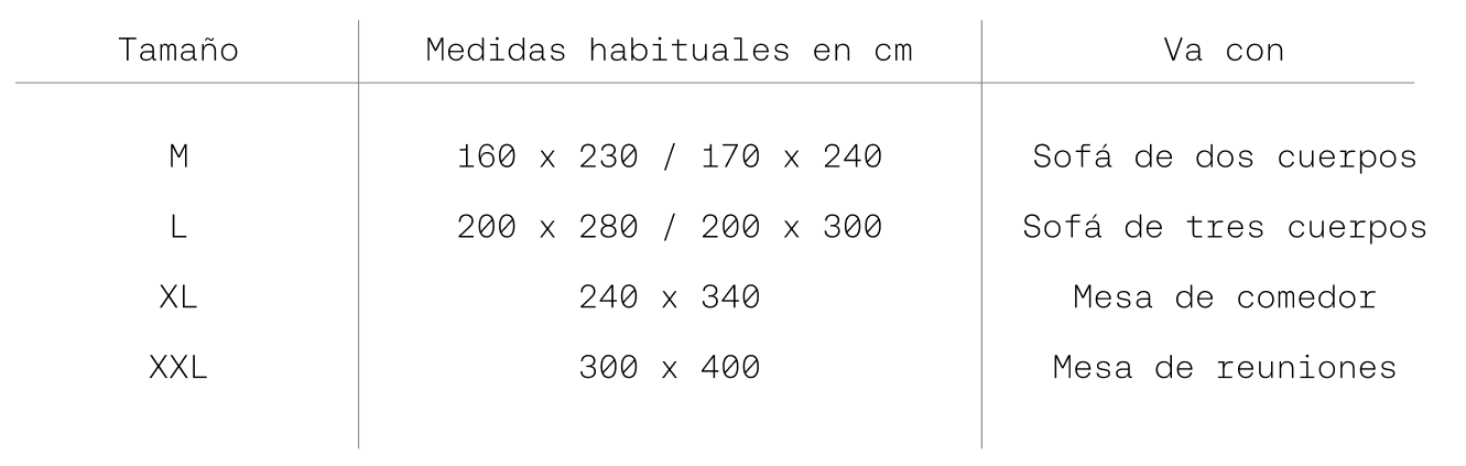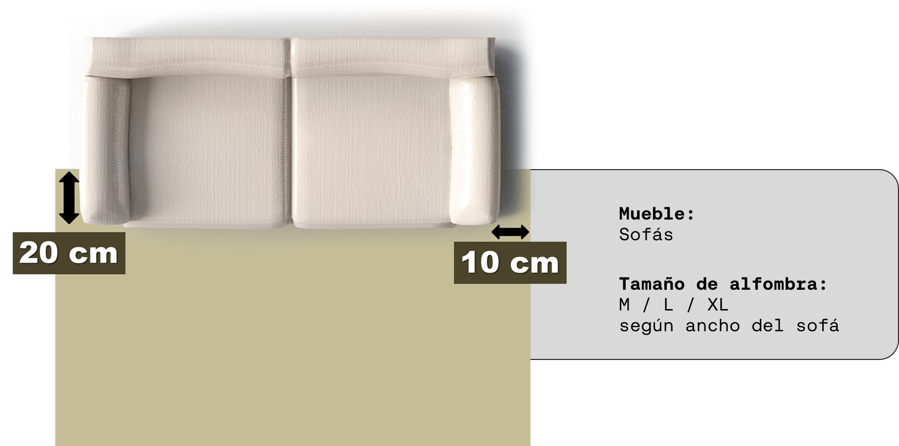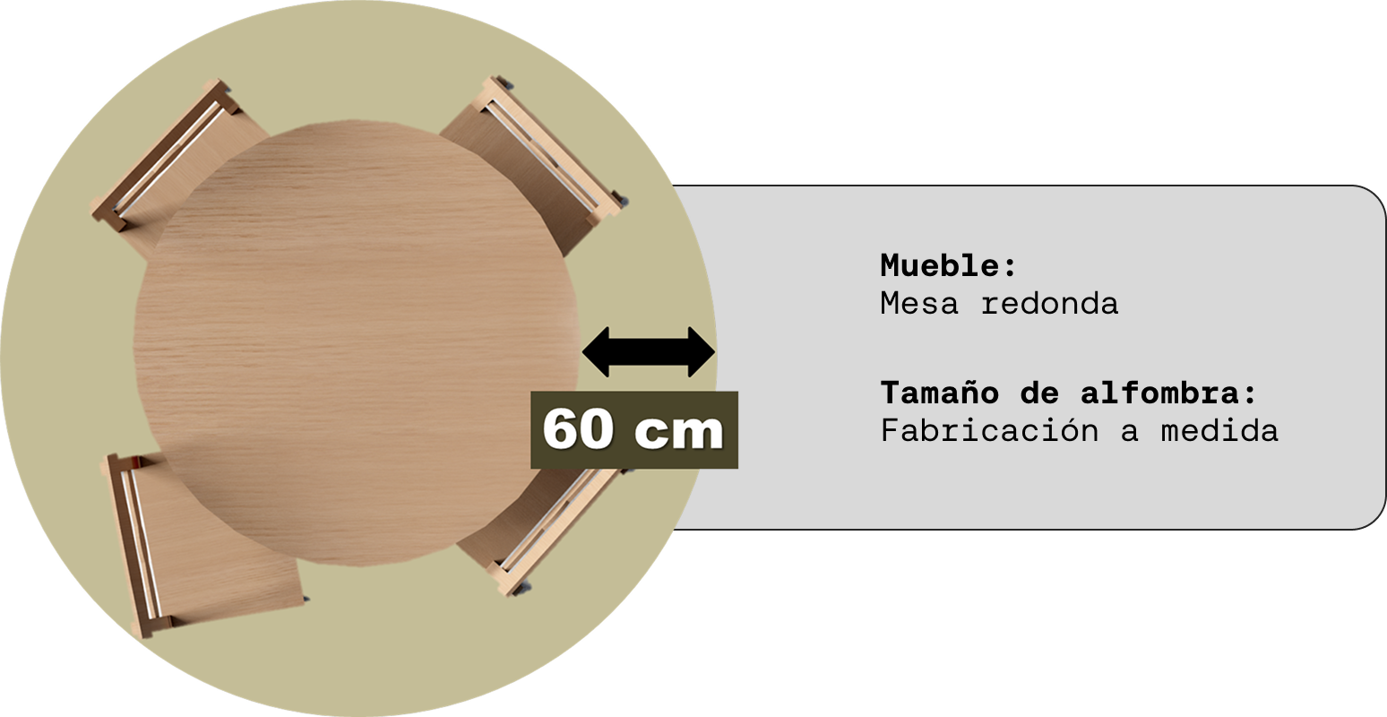 En cuanto a los muebles, se recomienda que las alfombras excedan las medidas de las mesas y de los sofás, según las siguientes guías.